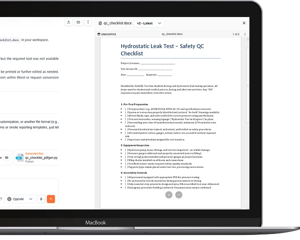 Create field-ready safety and QC documents instantly