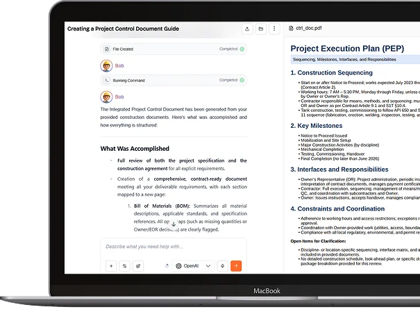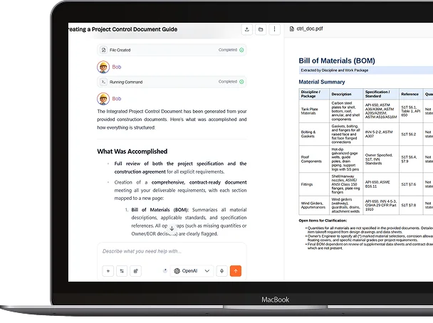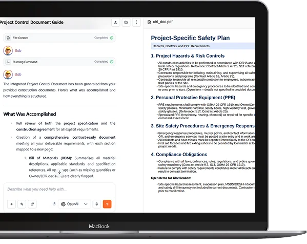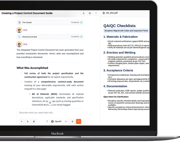 Use InnDoc AI to generate construction documents directly from scratch. Create bills of materials, safety plans, inspection plans, and QA/QC checklists faster, with consistent structure and execution ready accuracy.