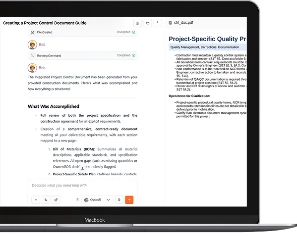 Bring AI into everyday construction workflows and turn complexity into confident execution.