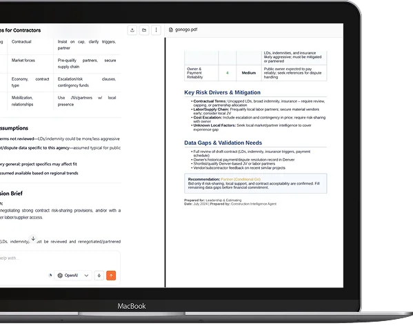 Bring AI into everyday construction workflows and turn complexity into confident execution.